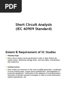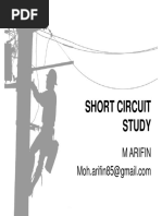 A short circuit is an abnormal condition of the supply system, caused by a demage or "shortcircuiting" of the normal insulation of the system. The task of a Short Circuit Protection Device is to bring the effects of this faulty condition under control and reduce the demages which it may cause. For the appropriate selection of the protection device, the expected short-circuit current at the point of installation must be known. If the actual short-circuit current is higher than the switching capacity of the protective device, a reliable interruption of the short-circuit currrent is not fully assured. Extensive damage and service interruption could be the result. The Value of the short-circuit current depends primarily on: The capacity of the supply source (ratings of transformer or generator) The Type of supply system The distance from the supply system The size of the conductors and the different devices lying between the fault and the supply and The impedance of the fault. The usual faults encounter are illustrated as below : Short Circuit Between All 3 Line Conductors Isc (3 Phase) = V(phase)/(1.732 x Z) Amp where Isc = Fault Current V(phase) = Voltage between pahases Z = Impedence of each coil (phase) of generator or transformer