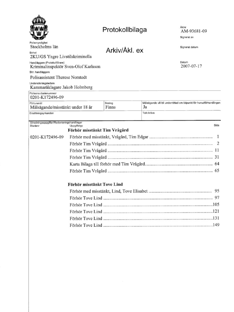 Protokollbilaga Förhör Stureby