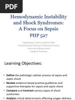 smooth muscle to vasoconstrictive agents coupled with a direct vasodilating effect. The net result in a fluidresuscitated patient is a hyperdynamic, hypotensive state associated with increased mixed venous O2 saturation; however, evidence of tissue ischemia as manifest by an increased serum lactate, presumably due to intraorgan functional shunts. Early septic shock (warm or hyperdynamic) causes reduced diastolic blood; widened pulse pressure; flushed, warm extremities; and brisk capillary refill from peripheral vasodilation, with a compensatory increase in cardiac output. In late septic shock (cold or hypodynamic), myocardial contractility combines with peripheral vascular paralysis to induce a pressure-dependent reduction in organ perfusion. The result is hypoperfusion of critical organs such as the heart, brain, and liver. The hemodynamic derangements observed in septic shock and SIRS are due to a complicated cascade of inflammatory mediators. Inflammatory mediators are released in response to any of a number of factors, such as infection, inflammation, or tissue injury. For example, bacterial products such as endotoxin activate the host inflammatory response, leading to increased pro-inflammatory cytokines (eg, tumor necrosis factor (TNF), interleukin (IL)1b, and IL-6). Toll-like receptors are thought to play a critical role in responding to pathogens as well as in the excessive inflammatory response that characterizes distributive shock; these receptors are considered possible drug targets. Cytokines and phospholipid-derived mediators act synergistically to produce the complex alterations in vasculature (eg, increased microvascular permeability, impaired microvascular response to endogenous vasoconstrictors such as norepinephrine) and myocardial function (direct inhibition of myocyte function), which leads to maldistribution of blood flow and hypoxia. Hypoxia also induces the upregulation of enzymes that create nitric oxide, a potent vasodilator, thereby further exacerbating hypoperfusion. The coagulation cascade is also affected in septic shock. In septic shock, activated monocytes and endothelial cells are sources of tissue factor that activates the coagulation cascade; cytokines, such as IL-6, also play a role. The coagulation response is broadly disrupted, including impairment of antithrombin and fibrinolysis. Thrombin generated as part of the inflammatory response can trigger disseminated intravascular coagulation (DIC). DIC is found in 25-50% of patients with sepsis and is a significant risk factor for mortality.[2, 3] During distributive shock, patients are at risk for diverse organ system dysfunction that may progress to multiple organ failure (MOF). Mortality from severe sepsis increases markedly with the duration of sepsis and the number of organs failing. In distributive shock due to anaphylaxis, decreased SVR is due primarily to massive histamine release from mast cells after activation by antigen-bound immunoglobulin E (IgE), as well as increased synthesis and release of prostaglandins. Neurogenic shock is due to loss of sympathetic vascular tone from severe injury to the nervous system.