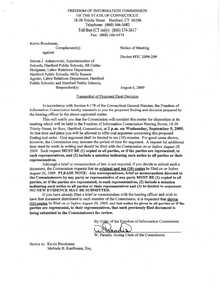 The Commission will consider this matter for disposition at its meeting on September 9, 2009. Oral argument shall be limited to ten (10) minutes. A request for additional time MUST BE made i…