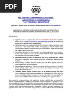 (a) (b) (c) (d) (e) (f) Candidates who do not meet the above mentioned eligibility criteria would not be allowed to appear for the interview. Candidates have to make their own arrangements to appear for the Personal Interviews. No TA/DA will be admissible by the Corporation. Indian Nationals only need to apply. The Company reserves the right to increase/decrease the number of vacancies or cancel the recruitment at any stage. The Company reserves the right to raise the minimum eligibility standard etc. in order to restrict the number of candidates. Candidates are advised in their own interest not to furnish any particulars that are false, tampered, fabricated or suppress any information while filing up the application form or during the verification process. In any such case, the candidature/appointment made shall be treated as null/void at any stage in the selection process. (g) Candidates are advised to check their e-mail and the Corporations website for information. (h) The appointment of selected candidates will be subject to their being declared medically fit by a Doctor approved by the Corporation and verification of their character, antecedents and caste certificates and eligibility conditions. (i) The selection of candidates for Interviews shall be at the discretion of the Corporation and the decision in this matter will be final and binding. Furnishing of wrong/false information will lead to disqualification and SCI will not be responsible for any of the consequences of furnishing such wrong/false information. The candidates must satisfy themselves of the suitability for the position to which they are applying. If at any stage during the recruitment and selection process, it is found that the candidates have furnished false or wrong information, their candidature will be rejected. Canvassing in any form during any stage of recruitment process will lead to cancellation of candidature. Court of jurisdiction for any dispute will be at Mumbai.