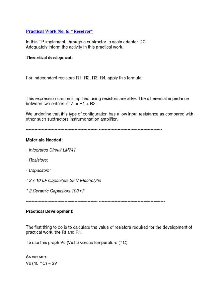 In this TP implement, through a subtractor, a scale adapter DC. Adequately inform the activity in this practical work. Theoretical development: