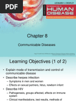 F. Diagnosis: Noninvasive screening options, such as urine testing or self-collected vaginal swabs are more acceptable to patients than traditional speculum examination. Tissue culture is expensive (only used in cases of forensic investigation eg, rape, child abuse) Rapid diagnosis by monoclonal antibody techniques or nucleic acid amplification (NAAT) Clinical practice guidelines strongly recommend routine chlamydia screening for sexuallyactive women below the age of 25 G. Treatment: Azithromycin 1000mg PO once Doxycycline 100mg PO twice daily for 7 days Pregnant woman o Erythromycin base 500mg PO four times daily for 7 days o Erythromycin ethylsuccinate 800mg PO four times daily for 7 days o Amoxicillin 500mg PO every 8 hours for 7 days VIII. GENITAL HERPES Caused by herpes simplex virus (HSV), a ubiquitous double-stranded DNA virus characterized by the following unique biological properties: neurovirulence (the capacity to invade and replicate in the nervous system), latency (the establishment and maintenance of latent infection in nerve cell ganglia), and reactivation of latent HSV induced by a variety of stimuli (eg, fever, trauma, emotional stress, sunlight, menstruation) A. Incidence: HSV-2 in 70-90% of cases 3% (nuns) to 70% (prostitutes) Usually found in 20-30% of adults B. Types I and II can cause genital ulcers C. Presentation: The initial presentation can be severe with painful genital ulcers, dysuria, fever, tender local inguinal lymphadenopathy, and headache. In other patients, however, the infection is mild, subclinical, or entirely asymptomatic. Primary episodes are associated with systemic symptoms such as headache, photophobia, and malaise Lesions o Typically cause pain (5-10% are painless) o Occur 2-7 days after contact with infected secretions o Males seen on glans or penile shaft o Females seen on the vulva, perineum, buttocks, cervix and vaginal wall o Homosexuals perianal and anus Infected persons without lesions can still transmit disease Increased abortion in pregnancy associated with active disease and babies should be delivered via Cesarean Diagnosis is made on clinical presentation or chemical immunological detection with a specific antibody or by cell culture D. Treatment: First clinical episode of genital herpes: o Acyclovir 400mg PO 3 times daily for 7-10 days or until clinical resolution o Acyclovir 200mg PO 5 times daily for 7-10 days or until clinical resolution o Valacyclovir 1000mg PO twice daily for 7-10 days or until clinical resolution o Famciclovir 250mg PO 3 times daily for 7-10 days or until clinical resolution First clinical episode of herpes proctitis: o Acyclovir 400mg PO 5 times daily for 10 days or until cinical resolution o Little evidence exists that a higher dose of antivirals are needed to treat herpes proctitis Recurrent episodes: o Acyclovir 400mg PO 3 times daily for 5 days, or o Acyclovir 200mg PO 5 times daily for 5 days, or o Acyclovir 800mg PO twice daily for 5 days