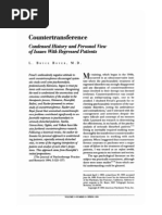 Much has been written about the countertransference in the more recent psychoanalytic literature. In this paper I shall look at the patient who evokes intense feelings in the analyst. I shall discuss the basis of such a phenomenon and different possible ways of dealing with it, and I shall describe how 'tolerating' the countertransferencecan be of therapeutic benefit to the patient. I shall begin, however, with a few historical comments on the concept of countertransference. It is often said that although Freud changed his views about transference from seeing it as a hindrance to appreciating its central therapeutic value, he never realized the therapeutic value of countertransference. In fact, what we now refer to as countertransference, and regard as helpful, is a different phenomenon from that described by Freud using the same term. Freud first used the term in 1910 to refer to the analyst's unconscious resistance against freely helping the patient to deal with areas of psychopathology which the analyst himself found difficult, and he maintained this usage throughout his later writings. What we call countertransference nowadays is quite different, the term beingmost commonly applied to conscious and preconscious feelings which the analyst has towards his patient. The move towards this more modern version was begun by Paula Heimann in her 1950 paper 'On countertransference'. She starts by defining the term as 'all the feelings which the analyst experiences towards his patient'. She includes the unconscious in this, describing the countertransference as being the result of an interaction whereby 'the analyst's unconscious understands that of his patient', but she focuses in the paper on conscious and preconscious feelingswhat she calls the analyst's 'emotional response' to the patient. It is this focus on conscious and preconscious feelings towards the patient which has come to be generally referred to in more recent years. Segal (1977), however, has pointed out that, contrary to this common usage, the major part of the countertransference is unconscious, and we become aware only of its conscious derivatives. Heimann goes on to describe how, if the analyst allows himself to become aware of his countertransference, the feelings can be used to point him towards the areas that are significant to the patient at that time. The process whereby such a situation becomes possible can be understood through the concept of projective identification, which was first described by Melanie Klein (1946) as a mental activity occurring initially in early infancy, but continuing throughout life. It is based upon an unconscious phantasy in which split off parts of the self are seen as having been put into, and become part of, the other person, originally the breast as a part-object. This original concept has since been extended by Bion (1959) and Rosenfeld (1971) to include the notion that the recipient of the projective identification is affected by it, such that he can experience whatever is projected into him. It is on the basis of such an idea that the later views of countertransference are now understood, and it is interesting that Heimann says in 1950 that 'the analyst's countertransference is not only part and parcel of the analytic relationship, but it is the patient's creation, it is a part of the patient's personality'.