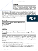a component of natural gas condensate or a distillation product from petroleum, coal tar, or peat boiling in a certain range and containing certain hydrocarbons. It is a broad term covering among the lightest and most volatile fractions of the liquid hydrocarbons in petroleum. Naphtha is a colorless to reddish-brown volatile aromatic liquid, very similar to gasoline. In petroleum engineering, full range naphtha is defined as the fraction of hydrocarbons in petroleum boiling between 30 C and 200 C.[1] It consists of a complex mixture of hydrocarbon molecules generally having between 5 and 12 carbon atoms. It typically constitutes 1530% of crude oil, by weight. Light naphtha is the fraction boiling between 30 C and 90 C and consists of molecules with 56 carbon atoms. Heavy naphtha boils between 90 C and 200 C and consists of molecules with 612 carbons. Naphtha is used primarily as feedstock for producing high octane gasoline (via the catalytic reforming process). It is also used in the bitumen mining industry as a diluent, the petrochemical industry for producing olefins in steam crackers, and the chemical industry for solvent (cleaning) applications. Common products made with it include lighter fluid, fuel for camp stoves, and some cleaning solvents. Light Naphtha is also used directly as a blending component in the production of gasoline