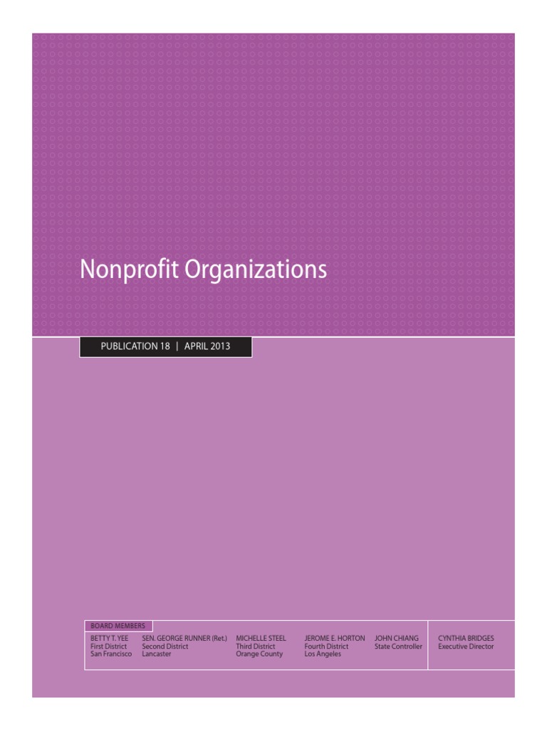 This publication is a general guide to the Sales and Use Tax Law and Regulations as they apply to sales and purchases by nonprofit organizations, including schools, religious organizations and churches, charitable organizations, and other nonprofit groups. If you cannot find the information you are looking for in this publication, please call our Taxpayer Information Section at 1-800-400-7115. Customer service representatives are available to answer your questions weekdays between 8:00 a.m. and 5:00 p.m. (Pacific time), except state holidays. This publication complements publication 73, Your California Sellers Permit, which includes general information about obtaining a permit; using a resale certificate; collecting and reporting sales and use taxes; buying, selling, or discontinuing a business; and keeping records. Also, please refer to our website or the For More Information section of this publication for the Board of Equalization (BOE) regulations and publications referenced throughout this publication. We welcome your ideas on improving this or any other BOE publication. Please send your suggestions to: Audit and Information Section, MIC:44 State Board of Equalization PO Box 942879 Sacramento, CA 94279-0044