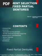 Lecture 3, part 2: This lecture is VERY important and simple (2nno mosh kol marra btemshy 3aleena hal jomle ya Dr.Sale7 :S ) , and it is a review of what I gave you last year, in addition to that, you started selecting partial denture cases so its gonna be clinically useful for you. What is the treatment option of partial edentulous patients? 1234NO treatment. RPD (Removable Partial Denture) FDD (Fixed Partial Denture) Implant supported prosthesis.