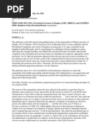 GANZON v CA (1991) Facts: T e (etitions of -a&or Gan=on originate% fro$ a series of a%$inistrati#e co$("aints, ten in nu$/er, fi"e% against i$ /& #arious cit& officia"s so$eti$e in 1988, on #arious c arges, a$ong t e$, a/use of aut orit&, o((ression, gra#e $iscon%uct, %isgracefu" an% i$$ora" con%uct, inti$i%ation, cu"(a/"e #io"ation of t e Constitution, an% ar/itrar& %etention. Fin%ing (ro/a/"e groun%s an% reasons, t e res(on%ent >Sec of !oca" Go#ern$ent? issue% a (re#enti#e sus(ension or%er for a (erio% of si)t& %a&s. 0n t e ot er case, res(on%ent or%ere% (etitioner1s secon% (re#enti#e sus(ension for anot er si)t& >@A? %a&s. T e (etitioner +as a/"e to o/tain a restraining or%er an% a +rit of (re"i$inar& in<unction in t e RTC. T e secon% (re#enti#e sus(ension +as not enforce%. A$i%st t e t+o successi#e sus(ensions, -a&or Gan=on institute% an action for (ro i/ition against t e res(on%ent in t e RTC. Present"&, e institute% an action for (ro i/ition, in t e res(on%ent CA. -ean+ i"e, t e res(on%ent issue% anot er or%er, (re#enti#e"& sus(en%ing -a&or Gan=on for anot er si)t& %a&s, t e t ir% ti$e in t+ent& $ont s, an% %esignating $eanti$e Bice.-a&or -ansueto -a"a/or as acting $a&or. 7n%aunte%, -a&or Gan=on co$$ence% /efore t e CA, a (etition for (ro i/ition. T e CA ren%ere% <u%g$ent %is$issing t e cases. Issue: 9*N t e Secretar& of !oca" Go#ern$ent, as t e Presi%ent1s a"ter ego, can sus(en% an% or re$o#e "oca" officia"s. Held: Ces. Rat !: 0t is t e (etitioners1 argu$ent t at t e 1987 Constitution no "onger a""o+s t e Presi%ent, as t e 19D6 an% 197D Constitutions %i%, to e)ercise t e (o+er of sus(ension an%Eor re$o#a" o#er "oca" officia"s. Accor%ing to /ot (etitioners, t e Constitution is $eant, first, to strengt en se"f.ru"e /& "oca" go#ern$ent units an% secon%, /& %e"eting t e ( rase Fas $a& /e (ro#i%e% /& "a+,F to stri( t e Presi%ent of t e (o+er of contro" o#er "oca" go#ern$ents. 0t is a #ie+, so t e& conten%, t at fin%s su((ort in t e %e/ates of t e Constitutiona" Co$$ission. T e issue consists of t ree 2uestions: >1? ;i% t e 1987 Constitution, in %e"eting t e ( rase Fas $a& /e (ro#i%e% /& "a+F inten% to %i#est t e Presi%ent of t e (o+er to in#estigate, sus(en%, %isci("ine, an% or re$o#e "oca" officia"sG >2? :as t e Constitution re(ea"e% Sections @2 an% @D of t e !oca" Go#ern$ent Co%eG >D? 9 at is t e significance of t e c ange in t e constitutiona" "anguageG 0t is t e consi%ere% o(inion of t e Court t at not+it stan%ing t e c ange in t e constitutiona" "anguage, t e c arter %i% not inten% to %i#est t e "egis"ature of its rig t . or t e Presi%ent of er (rerogati#e as conferre% /& e)isting "egis"ation to (ro#i%e a%$inistrati#e sanctions against "oca" officia"s. 0t is our o(inion t at t e o$ission >of Fas $a& /e (ro#i%e% /& "a+F? signifies not ing $ore t an to un%erscore "oca" go#ern$ents1 autono$& fro$ congress an% to /rea, Congress1 Fcontro"F o#er "oca" go#ern$ent affairs. T e Constitution %i% not, o+e#er, inten%, for t e sa,e of "oca" autono$&, to %e(ri#e t e "egis"ature of a"" aut orit& o#er $unici(a" cor(orations, in (articu"ar, concerning %isci("ine Autono$& %oes not, after a"", conte$("ate $a,ing $ini. states out of "oca" go#ern$ent units, as in t e fe%era" go#ern$ents of t e 7SA. Autono$&, in t e constitutiona" sense, is su/<ect to t e gui%ing star, t oug not contro", of t e "egis"ature, a"/eit t e "egis"ati#e res(onsi/i"it& un%er t e Constitution . an% as t e Fsu(er#ision c"auseF itse"f suggest . is to +ean "oca" go#ern$ent units fro$ o#er %e(en%ence on t e centra" go#ern$ent. 0t is note+ort & t at un%er t e C arter, F"oca" autono$&F is not instant"& se"f.e)ecuting, /ut su/<ect to, a$ong ot er t ings, t e (assage of a "oca" go#ern$ent co%e, a "oca" ta) "a+, inco$e %istri/ution "egis"ation, an% a nationa" re(resentation "a+, an% $easures %esigne% to rea"i=e autono$& at t e "oca" "e#e". 0t is a"so note+ort & t at in s(ite of autono$&, t e Constitution ("aces t e "oca" go#ern$ent un%er t e genera" su(er#ision of t e 8)ecuti#e. 0t is note+ort & fina""&, t at t e C arter a""o+s Congress to inc"u%e in t e "oca" go#ern$ent co%e (ro#isions for re$o#a" of "oca" officia"s, + ic suggest t at Congress $a& e)ercise re$o#a" (o+ers, an% as t e e)isting !oca" Go#ern$ent Co%e as %one, %e"egate its e)ercise to t e Presi%ent. T e %e"etion of Fas $a& /e (ro#i%e% /& "a+F +as $eant to stress, su/ si"encio, t e o/<ecti#e of t e fra$ers to strengt en "oca" autono$& /& se#ering congressiona" contro" of its affairs, as o/ser#e% /& t e Court of A((ea"s, "i,e t e (o+er of "oca" "egis"ation. T e Constitution %i% not ing $ore, o+e#er, an% insofar as e)isting "egis"ation aut ori=es t e Presi%ent >t roug t e Secretar& of !oca" Go#ern$ent? to (rocee% against "oca" officia"s a%$inistrati#e"&, t e Constitution contains no (ro i/ition. T e (etitioners are un%er t e i$(ression t at t e Constitution as "eft t e Presi%ent $ere su(er#isor& (o+ers, + ic su((ose%"& e)c"u%es t e (o+er of in#estigation, an% %enie% er contro", + ic a""ege%"& e$/races %isci("inar& aut orit&. 0t is a $ista,en