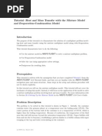 This tutorial demonstrates the setup and solution procedure for a uid ow and heat transfer problem involving solidication, namely the Czochralski growth process. The geometry considered is a 2D axisymmetric bowl (shown in Figure 20.1), containing a liquid metal. The bottom and sides of the bowl are heated above the liquidus temperature, as is the free surface of the liquid. The liquid is solidied by heat loss from the crystal and the solid is pulled out of the domain at a rate of 0.001 m/s and a temperature of 500 K. There is a steady injection of liquid at the bottom of the bowl with a velocity of 1.01 103 and a temperature of 1300 K. Material properties are listed in Figure 20.1. Starting with an existing 2D mesh, the details regarding the setup and solution procedure for the solidication problem are presented. The steady conduction solution for this problem is computed as an initial condition. Then, the uid ow is turned on to investigate the eect of natural and Marangoni convection in an unsteady fashion.