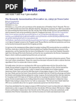 declined to change and afterwards insisted on revealing, for the record, the pressure to which he had been subjected; otherwise we would never have known about it. * Ruby's intimate, corrupt connection with the police was sufficiently revealed by numerous witnesses, whose evidence Mr. Lane presents. It was denied or softened out of recognition by the Commission. Ruby's movements and contacts before the assassination, like those of Oswald, were unexplored. Today Ruby is the only man who might still, at first hand, reveal the truth. But his requests to give evidence outside the state of Texas were refused, and he remains, to this day, in the custody of his old intimates, the Dallas police. While all these doubts remain, who can say that the case is closed? In a sense it is still 'sub judice'. The Report of the Warren Commission is an advocate's summing-up. The fact that the advocate believes his own version is not relevant: advocates often do. Before judgment can be given, the advocate of the other side must also be heard. That advocate is Mr Lane. He too believes in his brief. Thanks to that belief, he too may err in detail. But at least he has the right, which in America has often been denied to him, to a fair hearing. When both sides have been heard, and not before, posterity may judge. Hugh Trevor-Roper --------------------------------------------------* Hearings, V, 254-8. [19]