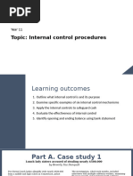Internal control is a system of procedures and cross checking that in the absence of collusion minimizes the likelihood of misappropriation of assets or misstatement of the accounts, and maximizes the likelihood of detection if this occurs. For the most part, internal control does not prevent embezzlement but should insure that, if committed, it will be promptly discovered, and the identity of the perpetrator known. This likelihood of discovery usually persuades most not to allow temptation to get the better of them. The most obvious reason for having a good system of internal control is to prevent the loss through theft of the organizations assets. second, e!ually important, reason is to prevent "honest# employees and volunteers from making a mistake that could ruin their lives. How is Fraud Detected? $uring the course of a %& audit s a result of an internal audit +histle blowers .heer accident 0isted below are some suggested internal control measures1 ). 2e!uire two signatures on every check. If this is too cumbersome, consider a second signature over a certain amount, like a thousand dollars. '. $o not use a signature stamp, or have any checks pre3signed. ,. 4ave bank statements and cancelled checks opened and reviewed by someone other than the person who writes the checks. This would most likely be the 5xecutive $irector. 6. &rohibit anyone in the accounting department from being a signer on bank accounts. /. &rohibit anyone in the accounting department from opening the mail. 7. 4ave all checks endorsed by whomever opens the mail with a pre3made stamp that says, "For $eposit 8nly#, and shows the organizations name and account number. '( )*( ,-( /-(