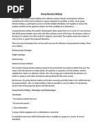 decision and "ho must be informed about the decision taken. Here) the follo"ing four factors should be kept in mind5 1. -uturity of the decision) 2. $he scope of its impact) 8. 4umber of ,ualitative considerations involved) and 9. Cni,ueness of the decision. 8. 0ollecting /elevant Data5 After defining the problem and analy ing its nature) the ne+t step is to obtain the relevant information/ data about it. $here is information flood in the business "orld due to ne" developments in the field of information technology. All available information should be utilised fully for analysis of the problem. $his brings clarity to all aspects of the problem. 9. Developing Alternative <olutions5 After the problem has been defined) diagnosed on the basis of relevant information) the manager has to determine available alternative courses of action that could be used to solve the problem at hand. .nly realistic alternatives should be considered. It is e,ually important to take into account time and cost constraints and psychological barriers that "ill restrict that number of alternatives. If necessary) group participation techni,ues may be used "hile developing alternative solutions as depending on one solution is undesirable. =. <electing the :est <olution5 After preparing alternative solutions) the ne+t step in the decision-making process is to select an alternative that seems to be most rational for solving the problem. $he alternative thus selected must be communicated to those "ho are likely to be affected by it. Acceptance of the decision by group members is al"ays desirable and useful for its effective implementation. >. 0onverting Decision into Action5 After the selection of the best decision) the ne+t step is to convert the selected decision into an effective action. *ithout such action) the decision "ill remain merely a declaration of good intentions. Here) the manager has to convert 'his decision into 'their decision' through his leadership. -or this) the subordinates should be taken in confidence and they should be convinced about the correctness of the decision. $hereafter) the manager has to take follo"-up steps for the e+ecution of decision taken. ?. 7nsuring -eedback5 -eedback is the last step in the decision-making process. Here) the manager has to make built-in arrangements to