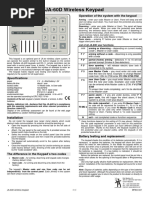 The JA-154J is a bi-directional remote control of the JABLOTRON 100 system. Features remote control of the alarm system, panic alarm triggering and appliance control. The device acts as two segments of a JABLOTRON 100 series keyboard. It is equipped with optical and acoustic signalling of the controlled segments status. Thus the execution of the sent command is visually and audibly conrmed by the remote control according to the information sent by the control panel. Checks and indicates the status of its battery. Power: Lithium battery type CR 2032 3.0 V Typical battery life: 2 years (10 activations/day) Operating frequency: 868 MHz Communication range: about 30 meters (line of sight) Environment according to EN 50131-1 II. general indoor Operating temperature range: 10 C to +40 C Dimensions: 36 72 15 mm Security level: grade 2 according to EN 50131-1 Complies with standards: ETSI EN 300220, EN 50130-4, EN 55022, EN 60950-1