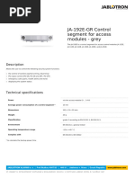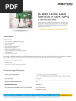 The JA-101K control panel is a basic component of the JABLOTRON 100 alarm system. It offers exible setting and allows easy protection for small premises, bigger family houses, ofces and companies. The desired settings and the size of the system is programmed by F-Link SW. The JA-101K offers: up to 50 wireless or BUS hardwired zones up to 50 user codes up to 6 sections up to 8 programmable outputs 20 independent calendars system reports to 8 users by SMS 5 users have the option of voice and SMS reporting 4 ARC settings 5 selectable reports to ARC It has a built-in GSM/GPRS communicator on the board offering communication by voice, SMS or GPRS to end users or to ARC centers. It is equiped with a 1 GB memory card on the board for saving event reports, a voice menu and messages, the storage of pictures and more. The main control unit includes terminals: 1 BUS terminal 1 terminal for built-in radio module (JA-110R) xternal power source 230 V/50 Hz E Power supply type A (EN 50131-6) Current consumption: lost AC 70 mA, during alarm 120 mA Back-up battery 12 V up to 2.6 Ah Maximum recharge time 72 hours BUS power supply maximum continuous load 400 mA Intermittent max output current (5 min.) 1 A Backup BUS power supply via 2.4 Ah backup battery for 12 hours at 120 mA JA-110R operating frequency 2-way Jablotron protocol 868 MHz (not included) Number of addresses (wireless or BUS): max. 50 Event reports: 700 MB app. 1 million enhanced events including time and date Alarm verication function by second detector or by selectable delayed reaction (10 s - 2 min) from the same detector (optional setting) Security grade 2 according to EN 50131-1, EN 50131-6 and EN 50131-5-3 and EN 50131-3; Environment according to EN 50131-1: II, internal