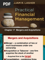 If no value is created through the combination of A and B, i.e. synergy = 0, then the merger is a zero-sum game and the gain to B shareholders is equal to the cost to A shareholders. If VAB > VA + VB, then both parties may benefit. Reasons for Mergers and Acquisitions To identify the sources of synergy, we find it useful to decompose the cash flows arising from a merger or acquisition. The gain in value of the combined firm is the present value of the synergy cash flows, CFt. Therefore, synergy may arise from the size or timing of expected future cash flows, or from a reduction in the riskiness of the cash flows. The synergy cash flows may be decomposed as: CFt = REVt - COSTSt - TAXESt -CAPITAL REQUIREMENTt