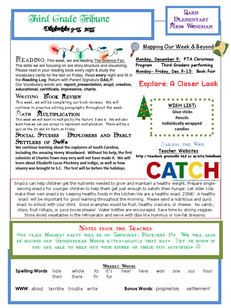 Third Grade Tribune \-December 9-13, 2013
