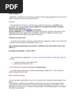 How much easier and faster a machine makes your work is the mechanical advantage of that machine. In science terms, the mechanical advantage is the number of times a machine multiplies your effort force. To find the MA of a machine, you can divide the resistance force by the effort force. Most of the time the resistance force is the weight of the object in Newtons.