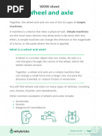 When we have to move a real heavy load, we have to use a great deal of force to push it, because of: Frication: Force resisting the motion of the object on the ground. Gravitational force: Force that pulls the object to the ground. The Wheel and axle solves this problem in jiffy! In this simple, a wheel is locked to a central axle and they rotate each other when a force is applied on either one of them. When we place a neavy load on the axle and push it, the rolling of the wheels reduces the friction to a large extent. However, the frictional force does not depend on the surface area of the object. The friction depends on its mass and what material it is made of. When there is less friction, it takes less force to move something. The effort needed to overcome the resistance, acting upon the axle is relatively small. We see the wheel and axle setup in many of our day to day activities. A longer motion at the edge of the wheel is converted to a shorter more powerful motion at the axle. We see the wheel and axle setup in many of our day to day activities. In reverse, a short powerful force at the axle will move the wheels edge at a greater distance.