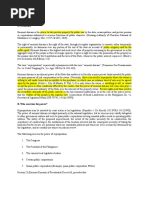 1nder %ec. 9 Rule +* of the Rules of Court, :just compensationN is to !e determined as of the date of the filing of the complaint. The %upreme Court has ruled that when the ta ing of the property sought to !e expropriated coincides with the commencement of the expropriation proceedings, or ta es place su!se(uent to the filing of the complaint for eminent domain, the just compensation should !e determined as of the date of the filing of the complaint. 8n the instant case, it is undisputed that the Repu!lic was placed in possession of the Castelvi property, !y authority of court, on )ugust ",, "3#3. The :ta ingN of the Castelvi property for the purposes of determining the just compensation to !e paid must, therefore, !e rec oned as of =une ?+, "3#3 when the complaint for eminent domain was filed. There is no !asis to the contention of the Repu!lic that a lease on a year&to&year !asis can give rise to permanent right to occupy since !y express provision a lease made for a determinate time, as was the lease of Castelvi land in the instant case, ceases upon the day fixed, without need of a demand 4)rt. "++3, ;ew Civil Code5. The %upreme Court, however, did not apply )rt. "?#, of the ;ew Civil Code for the adjustment of the peso rate in times of extraordinary inflation or deflation !ecause in eminent domain cases the o!ligation to pay arises from law independent of contract. 3. CIT> <F (<VER)ME)T <F BUEA<) CIT> v ERICTA FACTS' Ouezon City enacted an ordinance entitled :>RB8;);CA RA01/)T8;0 T@A A%T)6/8%@MA;T, M)8;TA;);CA );B >2AR)T8>; >D 2R8V)TA MAM>R8)/ TG2A CAMATARG >R 61R8)/ 0R>1;B .8T@8; T@A =1R8%B8CT8>; >D O1AP>; C8TG );B 2R>V8B8;0 2A;)/T8A% D>R T@A V8>/)T8>; T@ARA>DN. The law provides that at least six 4+5 percent of the total area of the memorial par cemetery shall !e set aside for charity !urial of deceased persons who are paupers and have !een residents of Ouezon City for at least # years prior to their death, to !e determined !y competent City )uthorities. Ouezon City justified the law !y invo ing police power. ISSUE: .hether or not the ordinance in (uestion isa valid exercise of police power. E!": The %C held the law as an invalid exercise of police power. There is no reasona!le relation !etween the setting aside of at least six 4+5 percent of the total area of all private cemeteries for charity !urial grounds of deceased paupers and the promotion of health, morals, good order, safety, or the general welfare of the people. The ordinance is actually a ta ing without compensation of a certain area from a private cemetery to !enefit paupers who are charges of the municipal corporation. 8nstead of !uilding or maintaining a pu!lic cemetery for this purpose, the city passes the !urden to private cemeteries. 2olice 2ower does not involve the ta ing or confiscation of property with the exception of a few cases where there is a necessity to confiscate private property in order to destroy it for the purpose of protecting the peace and order and of promoting general welfare as for instance, the confiscation of an illegally possessed article such as opium, firearms or a marijuana plantation.