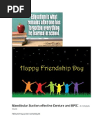 FUNCTIONS OF OCCLUSAL SPLINTS )uide Cond#"[Link] Asse$%"# to More Sta%"e Position The basic function of the occlusal splint is to prevent the existing occlusion from controlling the maxillo%mandibular relationship at maxi% mum inter%cuspation. A properly balanced splint results in an occlusion associated with relaxed positioning elevator muscles allowing the articu% lar disc to obtain its antero%superior position over the condylar [Link] therapy can utili'e centric%relation as a physiologic treatment position. 7henever reorganisation of the occlu% sion is required it is essential to precede restor% ative procedures with a period of splint therapy to ensure that a stable relationship has been achieved. Musc"e Re"a!ation The tooth interferences to the centric relation arc of closure activate the lateral pterygoid muscles posterior tooth interferences during excursive mandibular movements cause hyperactivity of the closing muscles. Occlusal splints promote muscle relaxation by providing a platform for the teeth that allows for equal distribution of tooth contacts immediate posterior tooth disclusion in all movements *with anterior guidancecomfort. Pro/ide Dia0nostic In,or$ation Occlusal splints provide diagnostic information in different ways. The dentist can determine parafunctional habits anterior guidance requirements as well as obtain information about vertical dimension from patients who wear a splint. 7hether or not bruxing is continuing can be monitored by observing wear facets created on the splint surface.
