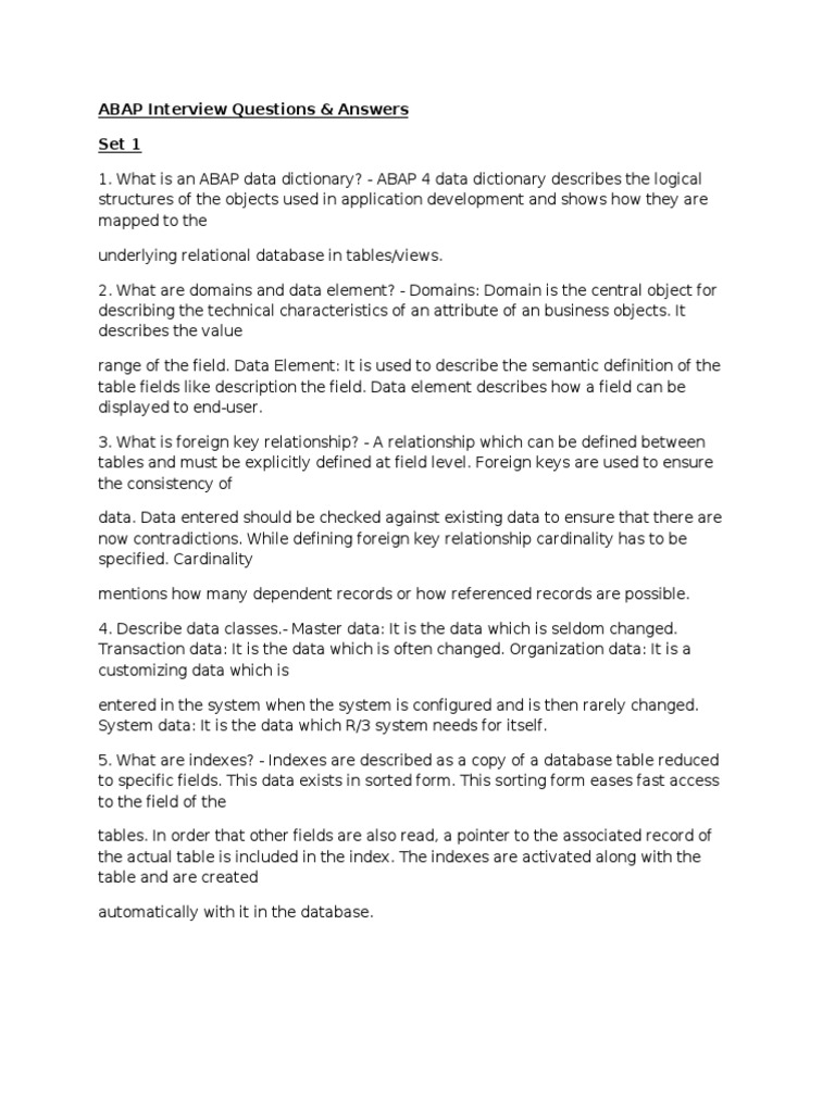 1. What s an ABAP data dctonary? - ABAP 4 data dctonary descrbes the ogca