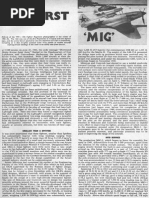 This profile represents an aircraft of 7 IAP, piloted by Capt. S.N. Polyakov, Leningrad front, summer 1941. It is a early type MiG-3, with radio mast and wires, and without slats. A part of the spinner looks painted with a light color, probably red. The tail wheel doors are bulged as on late version MiG-3s.