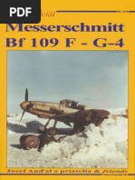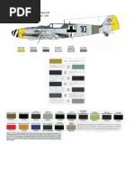 it is a late type aircraft, with slats; green/black camouflage and light blue undersurfaces; black repaintings on nose (perhaps on its lower surface too), spinner; some small fresh black repaintings on fuselage; the wingroot fairing and the panel in front of the windshield are all green, and the camouflage don't continues on them; tail wheel doors of early type, with recess for the protruding wheel;