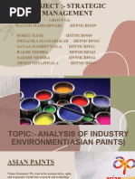 The bargaining power of buyers/customers In commodity business, which the paint industry is increasingly tending to become, volume matters more then value. Firms are finding it increasingly difficult to pass cost increase to customers. In the industrial paint segment of paint industry 65% of the share of product goes to the general engineering and the balance 35% to the automobile industry ,both these industries are experiencing sluggish growth and so there is an increase in buyers bargaining power. Result: Unfavourable The threat of substitute products There does not seem any threat of substitute so major in both segments of paint decorative and industrial paint. Result: favourable The amount of bargaining power suppliers have Raw materials( solvents,resins,pigments and additives) constitute around 50% of total production cost and hence have significant impact on margins in an industry that is increasingly becoming a commodity business in decorative segment, and so there is moderate bargaining power of suppliers. Result: Unfavourable The amount of rivalry among competitors there are existing rivals of Asian paint company which are Nerolac, Goodlas, ,Berger, ICI etc.