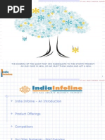 The IIFL (India Infoline) group, comprising the holding company, India Infoline Ltd and its subsidiaries, is one of the leading players in the Indian financial services space. IIFL offers advice and execution platform for the entire range of financial services covering products ranging from E uities and derivatives, !ommodities, "ealth management, #sset management, Insurance, Fixed deposits, Loans, Investment $an%ing, &oI bonds and other small savings instruments IIFL o'ns and manages the 'ebsite, '''.[Link], 'hich is one of India(s leading online destinations for personal finance, stoc% mar%ets, economy and business. # net'or% of over ),*++ business locations spread over more than *++ cities and to'ns across India facilitates the smooth ac uisition and servicing of a large customer base. #ll the offices are connected 'ith the corporate office in ,umbai 'ith cutting edge net'or%ing technology. The group caters to a customer base of about a million customers, over a variety of mediums vi-. online, over the phone and at the branches. 1.4.1 HISTORY AND MILESTONES 1995 !ommenced operations as an E uity .esearch firm 1997 Launched research products of leading Indian companies, %ey sectors and the economy !lient included leading FIIs, ban%s and companies 1999 Launched '''.[Link] 2000 Launched online trading through '''.*[Link] /tarted distribution of life insurance and mutual fund 2003 Launched proprietary trading platform Trader Terminal for retail customers 2004 #c uired commodities bro%ing license Launched 0ortfolio ,anagement /ervice 2005 ,aiden I01 and listed on 2/E, $/E 3