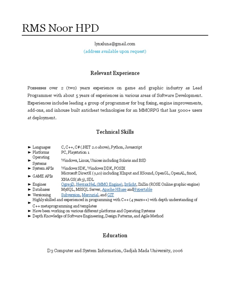 Experiences includes leading a group of programmer for bug fixing, engine improvements,