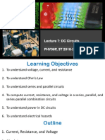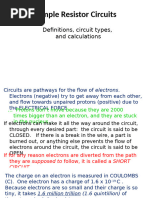 In the US, most of us use electricity every day. That electricity is handled in circuits: a closed loop of conductors travelling from power plants to neighborhoods to households and back again. That closed loop, with all of its many parts, forms one huge electrical circuit. Today well use the 3 essential parts of a circuit power supply (or battery), wires, and resistors. Well learn how resistors aect the current of electrons that ows through them, and how connecting resistors in dierent ways changes their behavior.