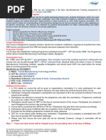 (#) Course Fee : Exclusive of Service Taxes @ 12.36%. Fees to be paid through Demand Draft only in favour of Central Manufacturing Technology Institute, payable at Bangalore, one week before the actual date of commencement of the course. Course Fee includes Program Kit, Mid-Session Tea / Coffee & Lunch. Rebate in Course Fee: A 10% rebate in total course fee will be given to organizations nominating 3 or more participants for each programme, only if payment is made in advance, ten days before the commencement of the course. Accommodation: Limited Hostel accommodation is available at CMTI campus on payment basis subject to availability. Important: 1. Participants are requested to kindly bring one recent passport size colour photograph for registration purpose. 2. Please note that nominations cannot be withdrawn. However, substitution will be permitted. 3. Participants are advised to proceed for the programme only after the nominations are confirmed by us (by Fax / Letter/ Phone / E-Mail). 4. The programme may be cancelled / postponed if nominations are not adequate in number. CMTI has the right to postpone/ cancel the courses. In addition to Scheduled Training Programmes as per calendar, CMTI conducts the following Programmes as well: In-house Programmes at Customers Premises Exclusive Programmes at CMTI / Corporate Training Programmes S Satish Kumar, Scientist-E / Head of the Department - AEAMT Central Manufacturing Technology Institute, Tumkur Road, Bangalore - 560 022 ( (080) 22188 223 / 328 Mobile : 09449842677 Fax: (080) 2337 0428 E-* training@cmti-india.net / satish@cmti-india.net / aeamt@cmti-india.net For further details please visit us at our website: www.cmti-india.net