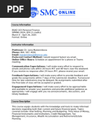 PREREQUISITES: None CREDIT HOURS: Non-Credit DATE OF LAST REVISION: Spring 2014 EFFECTIVE DATE OF THIS REVISION: Spring 2014 CATALOG DESCRIPTION: This course is an overview of how to manage personal finances. The course includes information in the areas of personal finances, loans, credit, and investing PURPOSE OF COURSE: This is an introductory level personal finance course. The purpose of this course is to provide students with a brief introduction to personal finance topics such as selecting and maintaining bank accounts; using credit wisely; learning the parts of a loan; learning about credit reports; learning how to create personal budgets; learning about investing and preparing for retirement and learning ways to improve your financial situation. This course uses real world scenarios to teach the concepts of personal money management. This course provides foundational knowledge in the area of personal finance and gives the student a basis for making informed personal financial decisions. COURSE LEARNING OBJECTIVES: After completing this course, participants will be able to: 1. Demonstrate the ability to maintain a checking and savings account. 2. Evaluate the components of loans and examine the process of a loan application. 3. Collect information concerning your personal credit status and make plans to improve financial trouble areas. 4. Analyze different investing opportunities and prepare an investing plan. COURSE CONTENT: Topical areas of study include: Personal budgets Bank accounts
