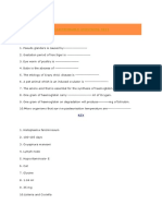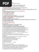 PHYSIOLOGY 15. Pace-maker of the heart 16. Chief mineralocorticoid seen in mammals is17. Hormone that arises from anterior pituitary with similar action of prolactin is18. Aldosterone is secreted from19. Hemophilia A is due to the lack of clotting factor20. Life span of feline RBC21. The instrument used to detect dysfunction of muscle in body22. Pepsinogen is secreted from- (cells) 23. Cells associated with clot formation24. Spps with normal mature nucleated RBC25. Respiration rate in normal healthy horse per minute is26. Cholesterol is synthesized from- (compound) 27. ESR of which spps is found highestPARASITOLOGY 28. Infectious stage of Moneizia is29. Parasite associated through the milk is30. Pinworms in equines is31. Protozoan disease transmitted via the ova of worm- (nematode) 32. Parasite associated with Vit B12 deficiency 33. The smallest and most pathogenic tapeworm of poultry34. Furcocercus cercaria is associated with35. Black disease in sheep is associated with the parasite36. Synonym of Paramphistomosis is37. The biology and epidemiology of kala azar is associated with the flies-( common name) 38. The tryps transmitted by way of coitus is39. Mite causing depluming itch in poultry is40. Punched out ulcer in abomassum is due to PATHOLOGY 41. Thrush breast heart is mainly associated with 42. Bacon spleen is seen in- (type of degeneration) 43. Pearl stain is used in staining44. Uremia is seen in conjunction with- vomitting/ abdominal pain / ascites ( choose the right one) 45. Counterpart of neutrophils in aves is46. Stage of pneumoniae in which clear fibrin thread seen is47. In Van den Berghs test, biphasic reaction is seen in- (type of jaundice) 48. In dermoid cyst-(characteristic feature)