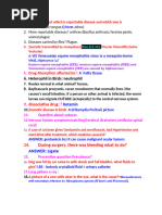 8. Which Ab is present during allergic reaction?......................Ig E 9. Pearl eye is associated with which disease?..........................mareks disease 10. Substance added to enhance the immunity by using inactivated microbes?.............adjuvant 11. Which of the following is not an innate factor of immunity? ......infection A)age b)sex c)species d)infection 12. Exotoxins are mainly secreted by?.............gram+ve bacteria 13. Leechy disease also known as?................Angara disease 14. Russell body is present in?......................plasma cell 15. Coggins test is done for?........................... EIA 16. Humoral immunity is associated with...........B lymphocytes 17. Which one is known as scavenger cells?.................macrophage 18. Mycolic acid is present in cell wall of?....................Mycobacterium 19. Lumpy jaw is caused by?....................Actinomycosis bovis 20. Protein which is specific for viral infection?................interferon 21. Strangles in horses is caused by?...............Streptococcus equi 22. Cell membrane of bacteria includes?......... aminoacids,carbohydrate,fatty acids,enzymes 23. Which one of the virus not comes under paramyxo? ....Reo virus A)R.P b)C.D c)PPR d)Reovirus 24. which of the following is a segmented virus?...........orthomyxo