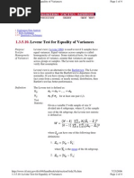and F1- is the lower critical value. Note that this is the opposite of some texts and software programs. Levene's Test Example Levene's test, based on the median, was performed for the [Link] data set. The data set includes ten measurements of gear diameter for each of ten batches for a total of 100 measurements.