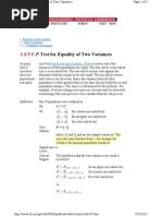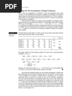 is the 10% trimmed mean of where Y i . the i-th subgroup. i. are the group means of the Zij and Z is the Z overall mean of the Zij. The three choices for defining Zij determine the robustness and power of Levene's test. By robustness, we mean the ability of the test to not falsely detect unequal variances when the underlying data are not normally distributed and the variables are in fact equal. By power, we mean the ability of the test to detect unequal variances when the variances are in fact unequal. Levene's original paper only proposed using the mean. Brown and Forsythe (1974)) extended Levene's test to use either the median or the trimmed mean in addition to the mean. They performed Monte Carlo studies that indicated that using the trimmed mean performed best when the underlying data followed a Cauchy distribution (i.e., heavy-tailed) and the median performed best when the underlying data followed a 2 4 (i.e., skewed) distribution. Using the mean provided the best power for symmetric, moderate-tailed, distributions. Although the optimal choice depends on the underlying distribution, the definition based on the median is recommended as the choice that provides good robustness against many types of non-normal data while retaining good power. If you have knowledge of the underlying distribution of the data, this may indicate using one of the other choices. Significance Level: Critical The Levene test rejects the hypothesis that the Region: variances are equal if W > F, k-1, N-k where F, k-1, N-k is the upper critical value of the F distribution with k-1 and N-k degrees of freedom at a significance level of . In the above formulas for the critical regions, the Handbook follows the convention that F is the upper critical value from the F distribution