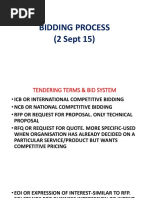 Tendering Process: Public Procurement procedure usually follows the following steps 1. Preparation of Bid Documents 2. Approval of Bid Documents by Competent Authority 3. Public Invitation for Pre-qualification (where relevant) 3.1. Issue of Instructions and Pre-qualification criteria 3.2. Pre-Application Meeting and Issue of Clarifications to Applicants 3.3. Receipt of PQ applications and scrutiny 3.4. Approval to PQ 4. Invitation for Bids 5. Issue of Bid documents to prospective bidders 6. Pre Bid Meeting and Issue of Minutes, Clarifications and Common Set of Deviations 7. Receipt of Bids 8. Scrutiny 9. Negotiations, where warranted 10. Acceptance of Bids