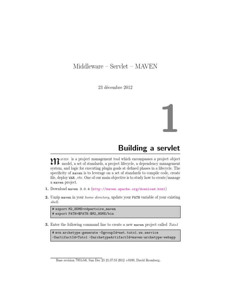 8. Enter either mvn clean install or mvn compile command in your shell at the root of your project. The compilation phase may fail as it lacks some dependencies. To overcome this issue, you should add the servlet API dependency in your [Link] le as illustrated in the following : Listing 4 [Link] download