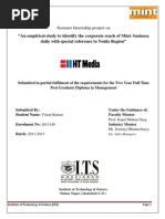 My training period had been a great learning experience and it wouldnt have been without the support of various people, who helped me to accomplish my project successfully. I express my sincere thanks to all those who had guided me in one or the other way. I would like to thank Mr HARSHIT DESAI (Associate Manager-Marketing), Hindustan Times- MINT for giving me an opportunity to prove my worthiness in the Marketing Department of the company and providing me with an insight into the marketing world. He always proved as an excellent project guide & without his guidance this training would not have been successful. I have seen in him an exceptional leader and will try to follow and implement some of the techniques. I would also like to thank all members of the Marketing Department and my team members who at all times treated me as a part of the department and not outside trainee. I am also thankful to the various heads of department and their assistants for sharing their experiences and also for giving their valuable suggestions. I would like to thank my course coordinator Prof V. V. Naik who was there to guide me throughout my project and helped in the completion of the final report. And warm thanks to our parents, close friends and respondents for their humble cooperation during project completion.