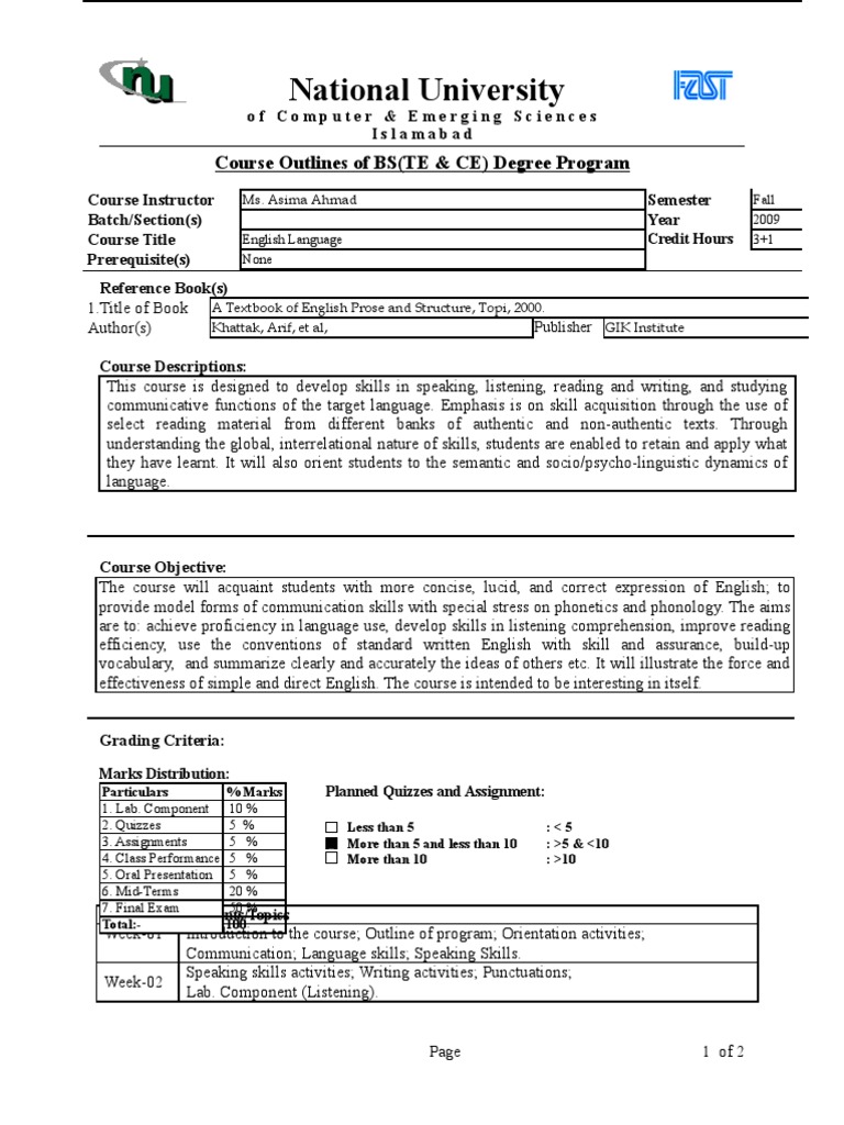 Course Title English Language Credit Hours 3+1