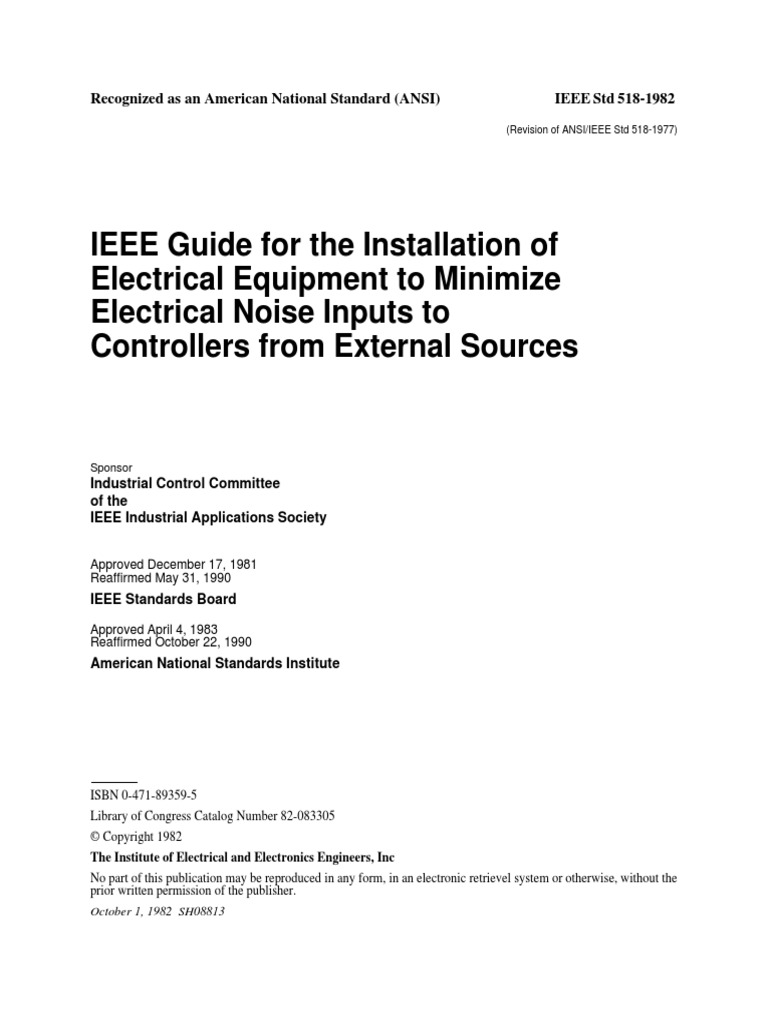 ELECTRICAL NOISE INPUTS TO CONTROLLERS FROM EXTERNAL SOURCES IEEE Std 518-1982