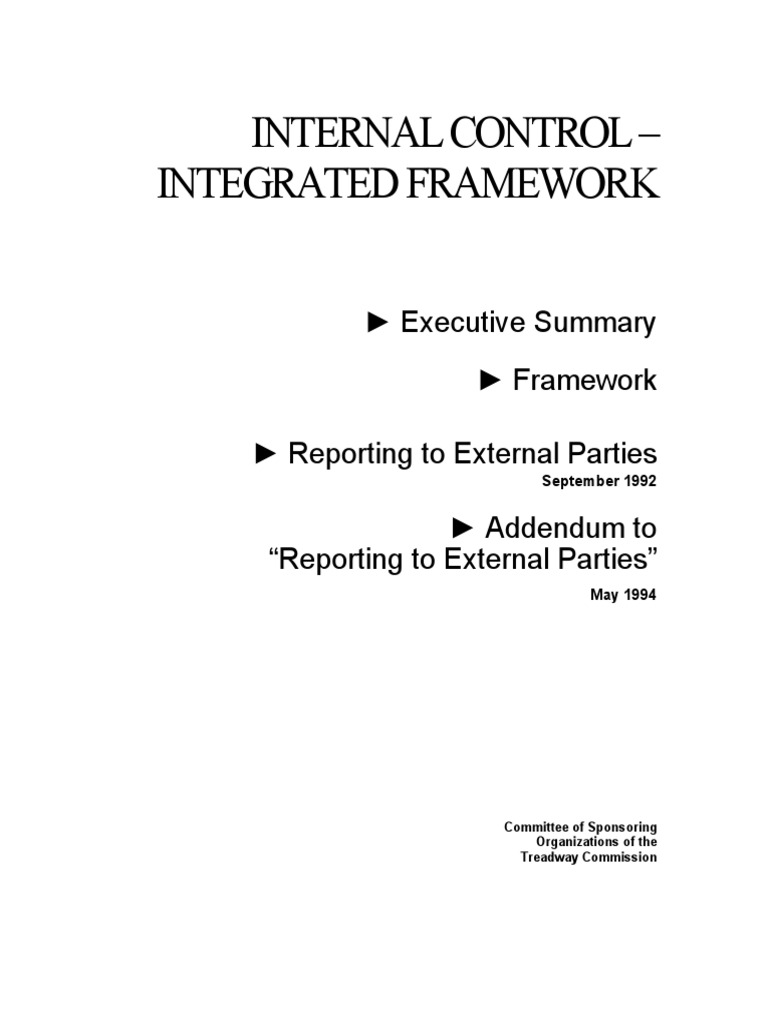 issued by the Committee of Sponsoring Organizations of the Treadway Commission. Based on this