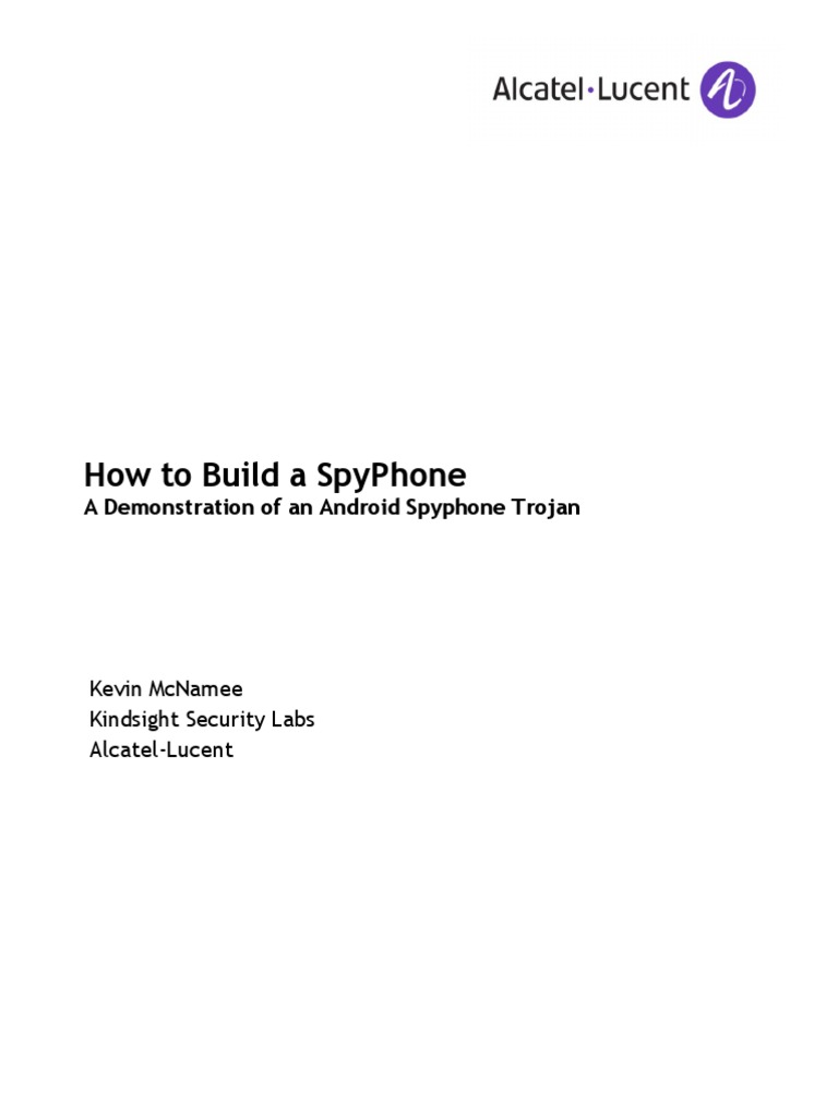 In this paper we discussed how we can turn an ordinary Android phone into a sophisticated cyber-espionage device that can: Track the phones location Download contact lists & personal information Intercept and send messages Record conversations Take pictures