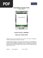 Googles Android SDK provides a rich set of API to control and manage the phone. This proof -of-concept spyphone service was built entirely on these APIs. There is no need to root the phone or otherwise compromise the operating system to access the features required to operate the spyphone functionality. The service was built based on Android OS 2.2 (Gingerbread). This will work on most of the phones that are used today. The Spyphone service used the following: User Information import [Link]; import [Link]; Phone & SMS import [Link]; import [Link]; Location import [Link]; import [Link]; import [Link]; Camera import [Link]; import [Link]; import [Link]; import [Link]; import [Link]; import [Link]; import [Link]; Audio import [Link]; Web C&C import [Link]; import [Link]; import [Link]; import [Link];