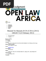DEFENCES FROM THE RULE IN RYLAND V FLEITCHER consent is a defense in an action under this rule if the defendant can prove that the plaintiff himself caused the escape by his conscious action then the plaintiffs action will fail. The crux of the rule in RvF is the issue of Escape which is key to the whole concept, so that if the plaintiff consented to the thing which escaped then his action will fail. A. CONSENT Peters v Prince of Wales Theater [1943] K.B. 73 B - ACT OF A THIRD PARTY: This is also a defence against the rule in RvF thus if the escape was caused by the unforeseen or deliberate act of a third party then the plaintiff cannot succeed under this rule. Facts: (Rex v Jubb) 1989 4.E.D. 170 In this case a third party emptied his reservoir into the defendants waterworks. It flooded and caused damaged to the plaintiffs property, it was held that, the defendant could not have prevented the incident and for that reason he was not liable C: AN ACT OF GOD: This is the third defense to an action in this rule. This defence states that, if the escape was caused by natural causes, without any human intervention and the circumstances was such that it is beyond human comprehension, then it is AN ACT OF GOD. Nichols v Mansland [1876] 2 EX DD Facts: In this case the defendant created some artificial ornamental lakes by damming up a natural stream, he held not liable when rainfall Greater and more violent than any within the memory of witnesses caused the embarkment to collapse and the escaping water destroyed 4 nearby bridges QUESTIONS: X owns a pice of land which has been developed into a tourist resort at Aburi. One of the attractions of this resort is a wall consisting loose stones the size of bulldozers depicting ancient architecture. One also have several pools containing exotic specie of fresh water fish. One day while an adjoining land owner went onto the land while chasing a rabbit and was injured when the whole wall of loose stones tumbled down. Shortly after this, a violent rainstorm the like of which had never been seen at Aburi before flooded Xs pools. The pools over flowed their banks and destroyed Ys crops.