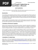 In divisional charts where divisions of a sign are mapped anti-zodiacally, the divisional longitudes are found from the end of the sign. Please see the section Reverse Reckoning at the beginning of the write up for more. Special Divisional Charts Research into divisional charts not mentioned in the available manuscripts of Parasaras teachings, such as D-5, D-6, D-8, D-11 etc, perhaps hold value. The principle described in this article can perhaps aid in the researches into special divisional charts. Objective principles help one draw more confident conclusions. Transit Longitudes at Anchor Moments When transit longitudes at the time of events were correlated to natal longitudes, there were not many interesting correlations. But, when transits at some anchor moments within a month of two from a key event were considered, there were significant correlations. Events like perfect trine transits of 2 planets, perfect samasaptakas of 2 planets, stationary transits of planets and eclipses are the anchor moments that can trigger important life events.