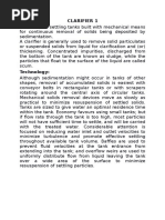Fundamental Design Principles of Sedimentation Units The design of the current system is based on the principle of gravity settling. Gravity settling occurs in tanks of water with large cross-sectional areas where small influent and outward flows create a state of virtual quiescence in the system. Under the influence of gravity, particles with densities higher than that of the surrounding fluid will sink (sedimentation) whilst lighter particles will travel upwards or float (flotation) (Huisman, 1986). The particles present in the system are retained in the sludge layer at the bottom of the tank. This allows the water to leave the system in a clarified state (Huisman, 1986). The rate of rise or fall of the particles depends on the particle size and particle density relative to the fluid. Larger particles descend more rapidly than smaller particles. The size of particle can be changed by aggregation. This segregates the types of clarification experienced in settling into two types (Figure 1): discrete settling and flocculated settling.