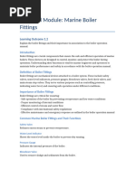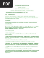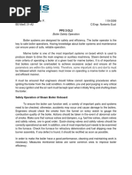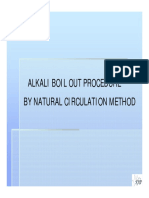 #$I% $L #NING This procedure is to be used when rust or mill scale is nown to e4ist to a high degree in the boiler. 'ormally# acid cleaning will not be re!uired on new boilers. The procedures given below outlines one method which can be used on marine boilers. )ther methods are possible# such as cleaning with citric acid. #cid cleaning by any method should al&ays be performed under the guidance of an acid cleaning firm or specialist' (" (#"#TION "hemical cleaning temporary piping should be completed. Temporary thermocouples should be installed so that temperatures can be monitored at the following locations: 1. /team drum &if not permanently installed,. 2. 'ear the centre of the furnace wall. 3. )ne loser furnace wall header. 6ill the boiler with clear# filtered# preferably softened water. 6ire the boiler at a very low rate until boiler metal temperatures &as indicated by thermocouples, are in the range of 5.-7.8". #cid dosing) The chemical solvent used in this step is composed of the following: - 9 hydrochloric acid &+"1, ..- 9 ammonium biflouride &'+*6 .+6, ..1-..29 inhibitor 2d%ust water temperature to 5-8" with steam while running to waste. Begin in%ection of inhibited concentrated acid solvent &- 9 +"1, to boiler. 2d%ust steam supply to maintain a dilute acid solution of 5-8" at a thermowell downstream of the steam addition point. "ontinue to fill boiler until the level of acid solution is at the top of the glass. /top fill. $ait a few minutes and chec to see if level is stable. :et boiler soa for si4 &5, hours with acid solution. ;uring this period# flush chemical cleaning header to waste. 2t the completion of the soa period# close drum vents and drain boiler and economi<er under ..2 - ..3 bar nitrogen pressure to waste. ;uring the drain# collect a composite sample of the spent acid. 2t the completion of the drain# chec for complete drainage of the acid solution. "INSING )pen drum vents and fill the boiler and economi<er with clear# filtered# preferably softened water with a p+ of less than 0.. until a level is indicated in the temporary gage glass. "lose drum vents and drain the boiler and economi<er under nitrogen pressure as above to waste. )pen drum vents and operate the boiler feed pump to flush the boiler. "ontinue to fill the boiler through chemical cleaning header with water as indicated above until water is discharged at the drum vents. "lose drum vents and drain the steam drum under nitrogen to its midpoint. "lose drum vents and drain boiler under nitrogen to waste. "hec the p+ of the rinse water. 1f the p+ is less than -..# another rinse &fill and drain, is re!uired. 1f p+ is greater than -.. proceed to neutrali<e. =emove the temporary gage glass and prepare the unit for operation. N UT"#LI*#TION BOIL+OUT )pen drum vents and through the chemical cleaning header# pump into the boiler the dissolved concentration sodium carbonate which should be e!uivalent to ..--1..9 sodium carbonate when boiler is filled to normal firing level.