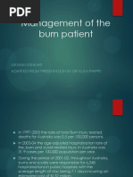 It is 1500 and John is scheduled for the hydrotherapy tank for wound cleansing. 12. The physician has ordered morphine sulfate 5 10 mg IVP q 1-3 hours prior to hydrotherapy and for pain. Prior to administering this medication, what will you need to do? 13. How will you monitor this patient during hydrotherapy? 14. After the completion of hydrotherapy, what do you anticipate for immediate wound care? On Johns second day in the ICU, a feeding tube is placed in the jejunum and he is started on tube feedings. Family members ask you why he has not received any nutrition before. How will you respond to this question? 15. Why if the feeding tube in the jejunum and not the stomach? 16. How will you determine if the tube feedings are meeting Dales metabolic needs? John moves into the acute phase of injury with mobilization of fluids and diuresis. During the next four weeks he has surgical debridement and skin grafting (autograft) on his right hand and arm. Other burn injuries continue to heal with hydrotherapy cleaning and prescribed topical agents. 17. Why might John have required skin grafting and debridement for burn wounds on his right hand and arm? 18. What patient education would you have provided regarding graft site selection and care after grafting?